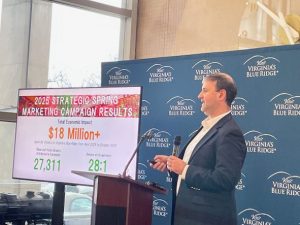 The first-ever Visit Virginia’s Blue Ridge Fall campaign in late 2025 attracted large numbers of visitors. Images captured and conveyed on social media channels had a lot to do with it. Hotel revenue for the same holiday period was up almost 7 percent in 2025 versus the same period in 2024; the number of rooms sold was up almost 5 percent. Yesterday Visit Virginia’s Blue Ridge brought together its regional partners to celebrate and to remind them that regional cooperation – and joint funding of VBR – really makes a difference. WFIR’s Gene Marrano reports: