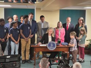 Governor Abigail Spanberger was in Roanoke today at the Higher Education Center to sign several new bills into law. The centerpiece is a workforce development package that expands apprenticeship access for high school students, increases the number of qualified career and technical education instructors, and makes the “Roanoke Community Builders Pilot Program,” championed by local delegate Sam Rasoul permanent, who was on hand. Community Builders is an initiative aimed at reducing youth violence. Local leaders joining the governor included Mayor Joe Cobb, Roanoke City Public Schools Superintendent Doctor Verletta White, and Roanoke College President Frank Shushok. Delegates Chris Head and Lily Franklin, and State Senator David Suetterlein also witnessed the Governor’s ceremonial signing today.