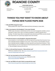 FEMA has released a mapping application featuring new, preliminary flood maps for Roanoke, Roanoke County and Salem. Nickie Mills, the flood plain administrator for Roanoke County; encourages all county residents to review the updated maps to identify any changes affecting their property. Mills says the previous maps were drawn in 2007.