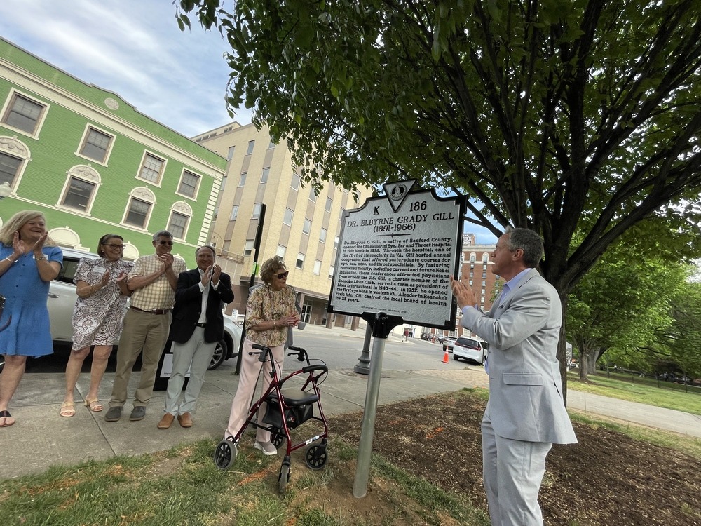 The City of Roanoke recognized the life of Dr. Elbyrne Grady Gill on Friday by unveiling a state historic marker at Elmwood Park. Located in the 700 block of South Jefferson Street, the marker stands across from the former Gill Memorial Hospital building.