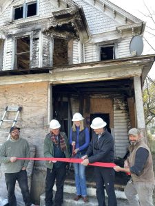 Historic tax credits and American Rescue Plan funds will help Restoration Housing turn a fire-damaged late 1800’s house on Dale Avenue SE into one-bedroom apartments for two tenants that were previously homeless. Its the tenth project for non-profit Restoration Housing, and the second blighted home Restoration Housing has purchased from the Rescue Mission on Dale Avenue SE for rehabilitation. Executive director Isabel Thornton at a groundbreaking this morning said they’ll invest about $300,000 in the project but will recoup much of that from tax credits and grant funding.